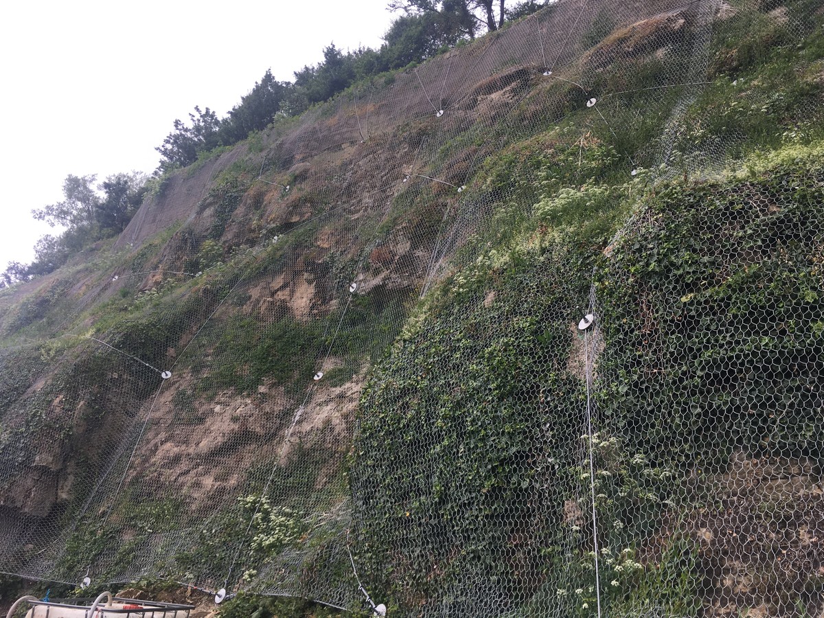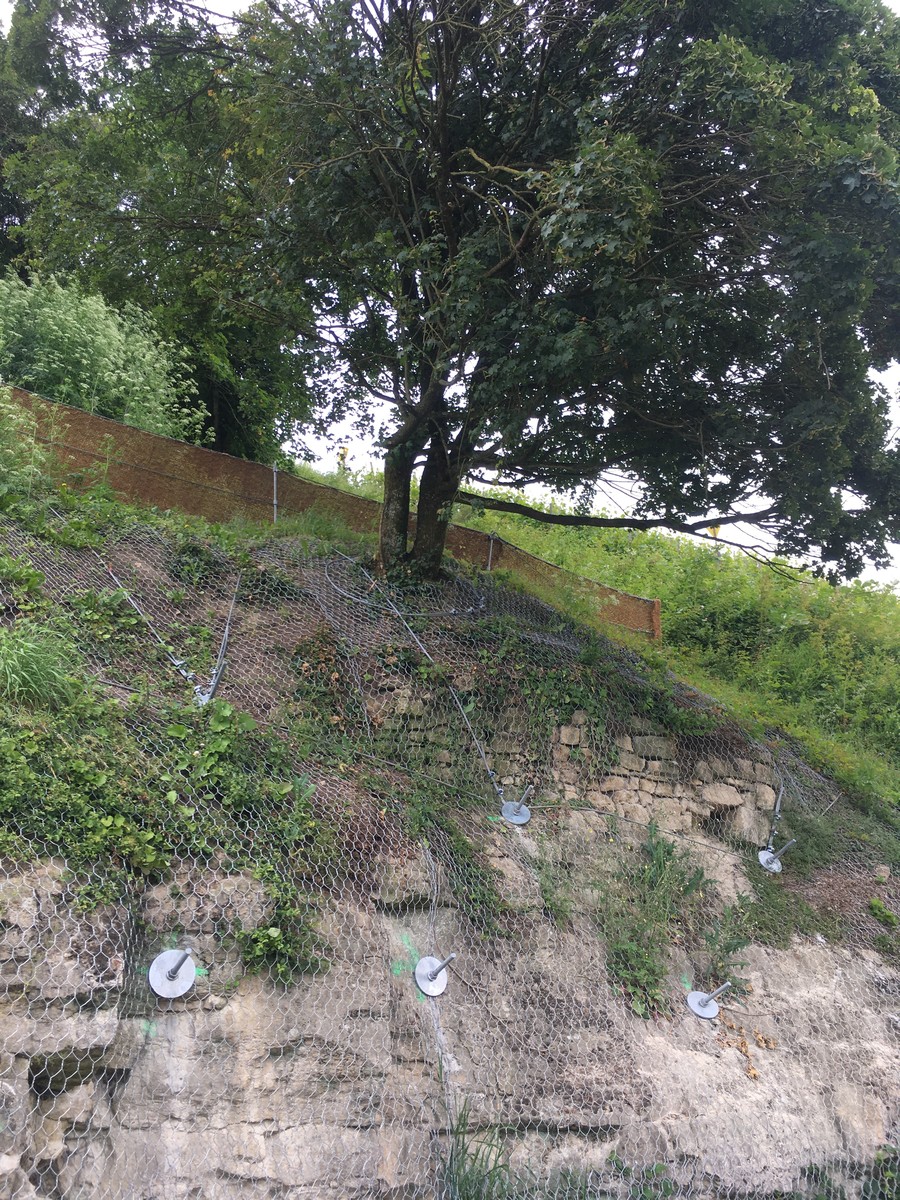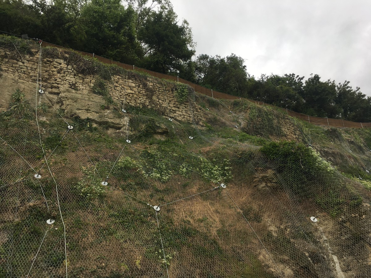 Accrochage d’un grillage passif métallique à double torsion renforcé par des câbles d’acier